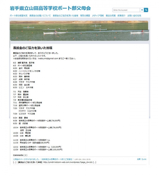岩手県立ボート部父母会ページ義援金を頂いている皆様