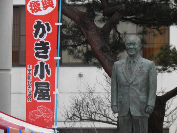 山田のかき小屋と鈴木善幸さん 公開日時: 2012年4月3日 @ 600 × 450 カテゴリー: 2012.3.17~18 復興山田がんばっぺし祭り Yamada Genki 山田のかき小屋と鈴木善幸さん 岩手県山田町が生んだ、鈴木善幸元総理大臣。銅像はご本人に良く似ていらっしゃいます。そして山田と言えば牡蠣!!