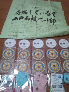 山田高校ボート部の為に50本Yamada Genkiペンを購入し山田町で販売して頂き、また新作「浜千鳥大吟醸飴」をボート部支援チームから購入したものは30%が義援金となるようにして下さっている『三陸味処三五十』の大杉繁雄社長とそのご家族。