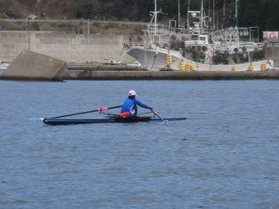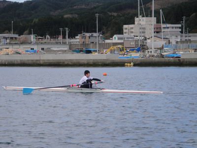 男子シングルスカル優勝 山根慶大くん(3年)