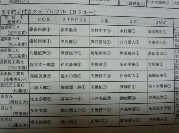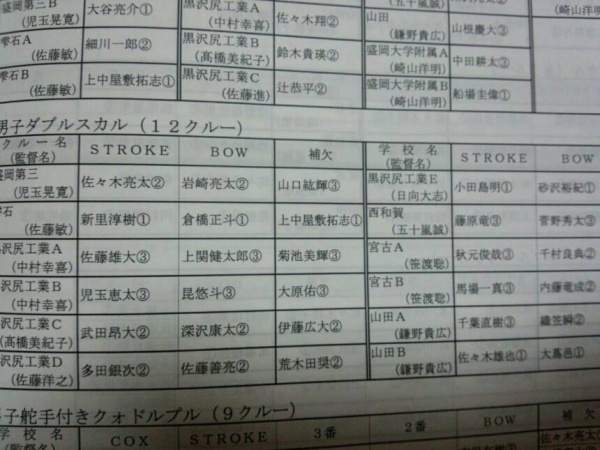 決勝戦3位までが東北大会出場権、優勝クルーは東北大会+インターハイ出場権を獲得するという大事な試合で、決勝に進んだ4クルー全員が東北大会の出場権を獲得、更に2クルーがインターハイ出場を決めると云う輝かしい成績を収めました